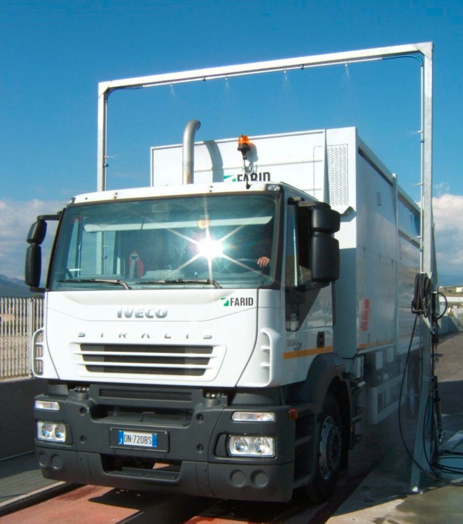 Bramy dezynfekcyjne dla pojazdów transportujących zwierzęta, paszę czy sprzęt stanowią równie istotny element bioasekuracji zewnętrznej. Powinny znajdować się przy wszystkich wjazdach na teren gospodarstwa i zapewniać pełne pokrycie powierzchni pojazdu środkiem dezynfekcyjnym. Skuteczność bram zależy od zachowania odpowiedniego ciśnienia, dawki środka oraz czasu kontaktu z powierzchnią. Regularna kontrola i konserwacja urządzeń gwarantuje, że wszystkie pojazdy opuszczające i wjeżdżające na fermę są odpowiednio odkażone. Bramy dezynfekcyjne powinny być używane w połączeniu z matami i procedurami w strefach wejściowych, aby stworzyć spójny system ochrony biologicznej. Stosowane są również niecki wypełnione środkiem dezynfekcyjnym. Ważne jest, aby ich wielkość i głębokość zapewniały odkażenie całego obwodu kół pojazdów. Dodatkowo przy pomocy myjek z lancą można umyć podwozie i nadwozie, jeżeli na fermie nie zainstalowano bram przejazdowych. Sama dezynfekcja pojazdów wymaga oczywiście systematyczności i właściwej organizacji. Wszystkie pojazdy powinny przechodzić pełny proces: mycie wstępne, nanoszenie środka dezynfekcyjnego i pozostawienie go na powierzchni przez zalecany czas kontaktu. Zaniedbania, takie jak spryskiwanie wyłącznie części pojazdu lub pomijanie pojazdów przy wyjeździe z gospodarstwa, znacząco obniżają skuteczność całego systemu i stwarzają realne zagrożenie dla stada.