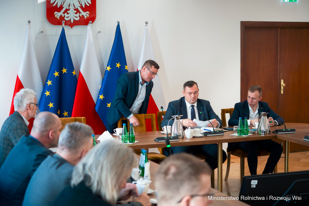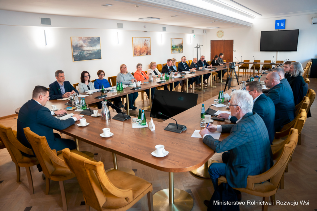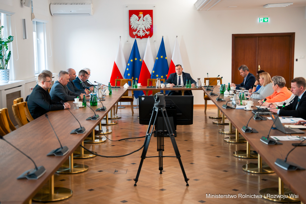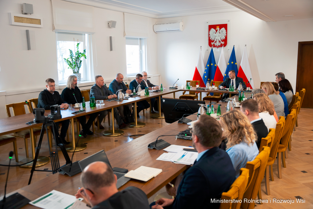 W Ministerstwie Rolnictwa i Rozwoju Wsi odbyło się spotkanie ministra Stefana Krajewskiego z przedstawicielami Krajowej Rady Wieprzowiny. Rozmowy dotyczyły aktualnej sytuacji sektora produkcji trzody chlewnej w Polsce, w tym wyzwań związanych ze zwalczaniem afrykańskiego pomoru świń (ASF), funkcjonowaniem stref ograniczeń oraz stabilnością ekonomiczną gospodarstw utrzymujących trzodę chlewną.