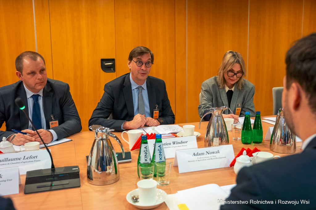 Podsekretarz stanu Adam Nowak spotkał się z prezesem Izb Rolniczych Francji (Chambres d’agriculture France) Sébastienem Windsorem oraz towarzyszącą mu delegacją. Rozmowy koncentrowały się na najważniejszych wyzwaniach stojących przed rolnictwem w Unii Europejskiej – od przyszłego kształtu WPR po konsekwencje polityki handlowej i funkcjonowanie jednolitego rynku.